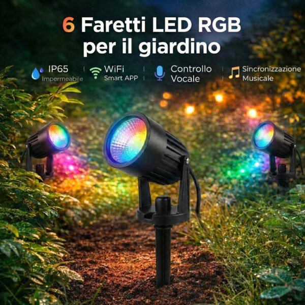 6 Faretti LED RGBW da Giardino, Luci da Esterno Multicolore e Bianco Caldo 3000K, 12V Smart Wi-fi