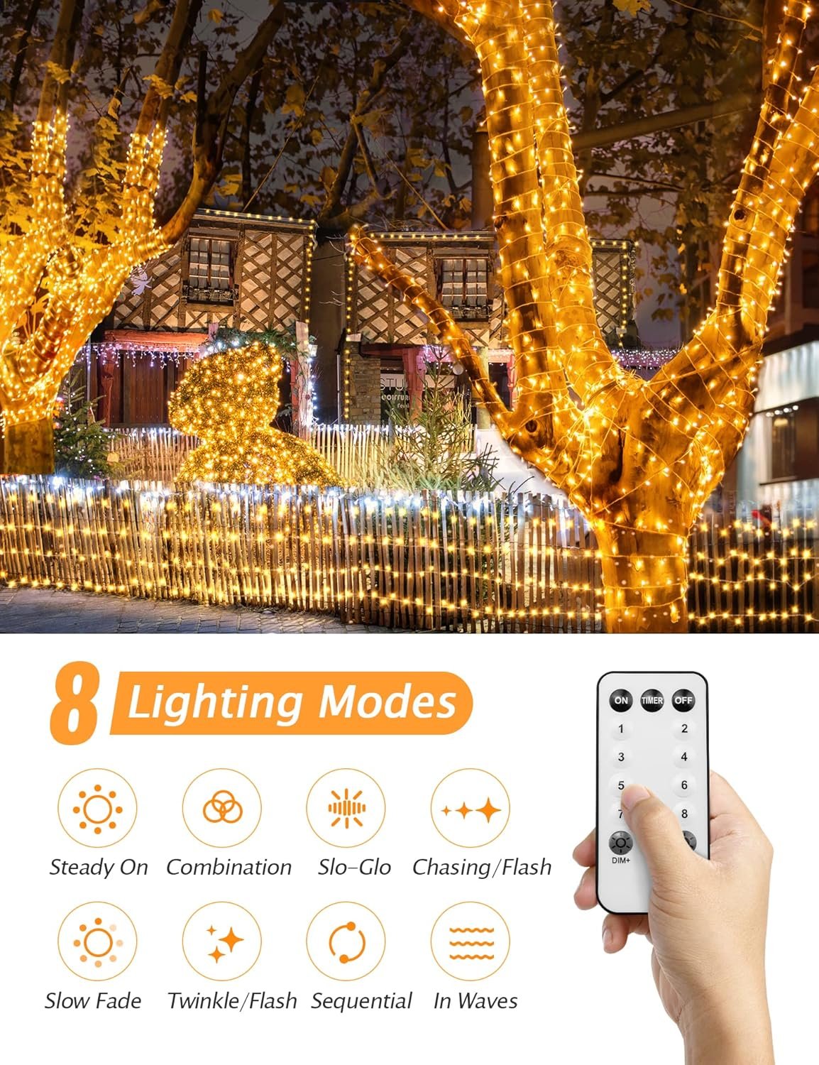 Questa catena luminosa viene fornita con un pratico telecomando, che ti permette di controllare facilmente le modalità di illuminazione, il timer e la luminosità. Grazie alle numerose opzioni di personalizzazione, puoi scegliere tra diversi giochi di luce per adattare l’atmosfera della tua casa o giardino a ogni occasione. Inoltre, la sua lunghezza di 100 metri garantisce la copertura di ampie superfici, rendendola ideale per grandi alberi o ampi spazi esterni.