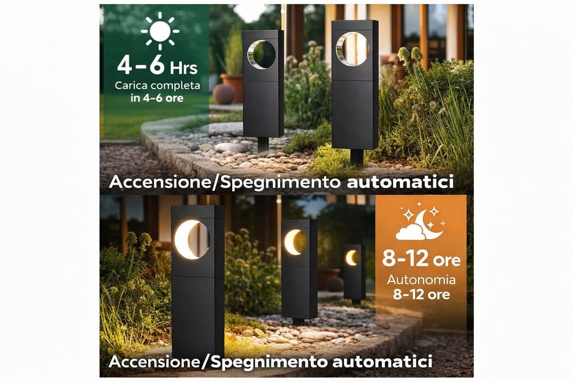 Dove le ho posizionate pensavo prendessero più sole e invece no, quindi l’autonomia è un po’ limitata. Per il resto sono ben fatte e il prezzo resta il migliore trovato. Spedizione comunque veloce.